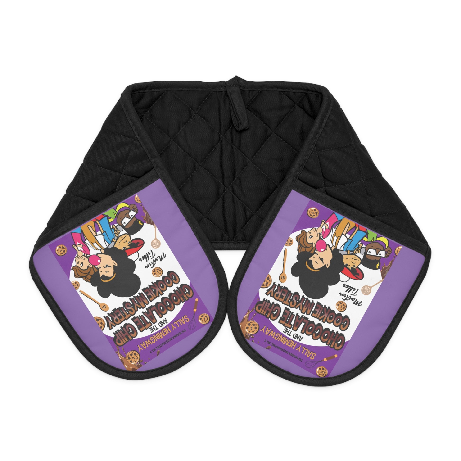 These heat-insulated oven mitts are the perfect cover for the book Sally Hemingway and the Chocolate Cookie Mystery. Lightweight and soft to touch, they are both durable and strong. With a hanging loop for easy storage, these oven mitts are slip-resistant and provide excellent heat insulation. One size fits all.
